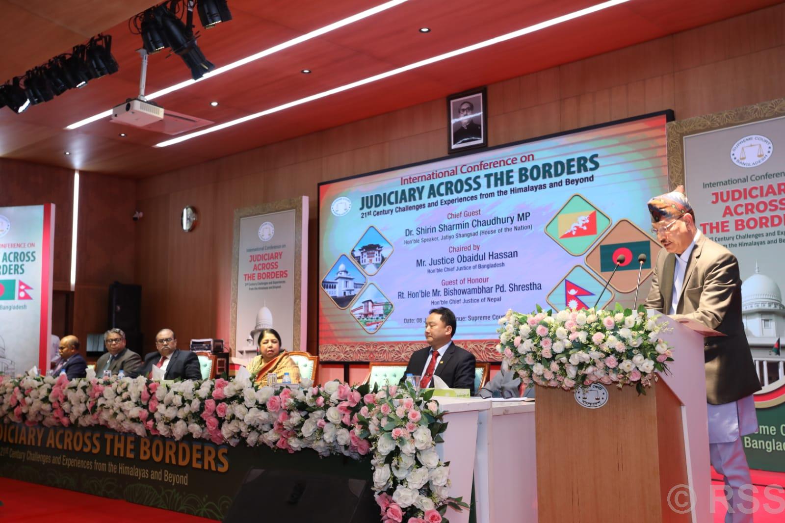 बङ्गलादेशको राजधानी ढाकामा शनिबार भएको न्यायपालिकासम्बन्धी अन्तर्राष्ट्रिय सम्मेलनमा उहाँले नेपालमा भएका न्यायिक सुधारका बारेमा जानकारी दिँदै न्यायपालिकाको पाँचवर्षे रणनीतिक योजना तयारी भइरहेको जानकारी बताउनुभयो ।