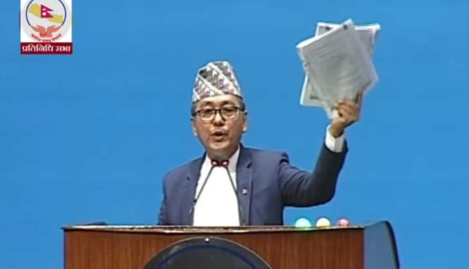 प्रतिनिधिसभाको मंगलबारको बैठकमा भौतिक मन्त्रालयको खर्च कटौतीको प्रस्ताव राख्दै लिङ्देनले पुस्तिका च्यातेका हुन् ।