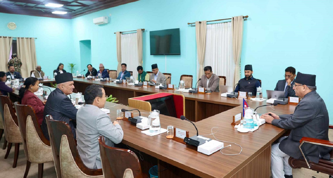 काठमाडौं १० असार । मन्त्रिपरिषद् बैठक सिंहदरबारमा बसिरहेको छ। केहीबेरअघि सिंहदरबारस्थि प्रधामन्त्री तथा मन्त्रिपरिषद् कार्यालयमा बैठक सुरु भएको हो।