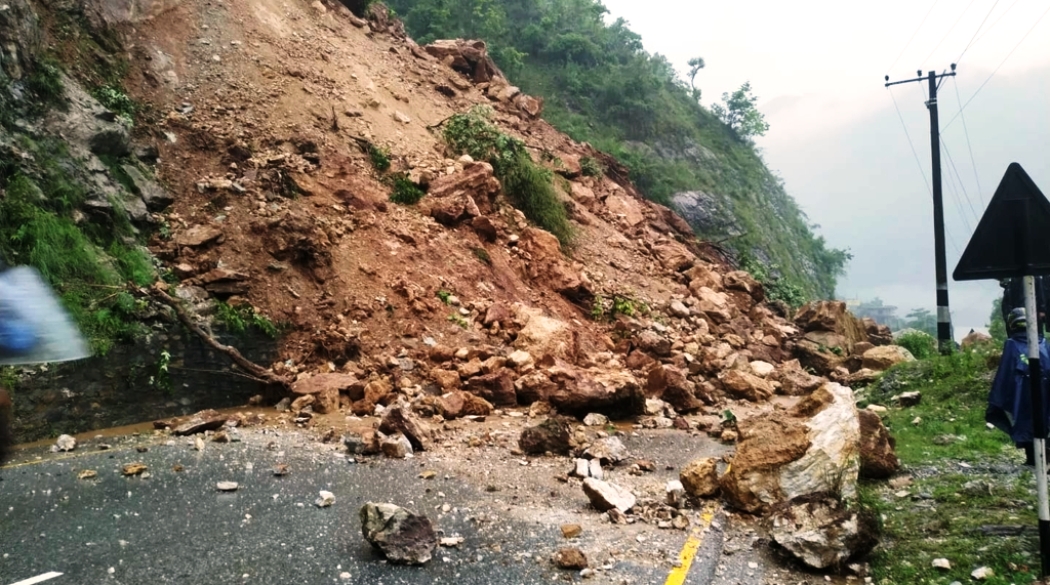 काठमाडौं १६ असार । त्रियुगा नगरपालिका(१४ स्थित साउनेको हाडेथुम्कास्थित गाईघाट(दिक्तेल सडक गएराति खसेको पहिरोले आज बिहानदेखि अवरुद्ध भएको छ । त्रियुगा(१४ का वडा अध्यक्ष हेमराज मगरका अनुसार साउनेको गाईघाट(दिक्तेल सडकअन्तर्गत हाडेथुम्काको डाँडाबाट पहिरो खसेका कारण सडक पुरिएको हो ।