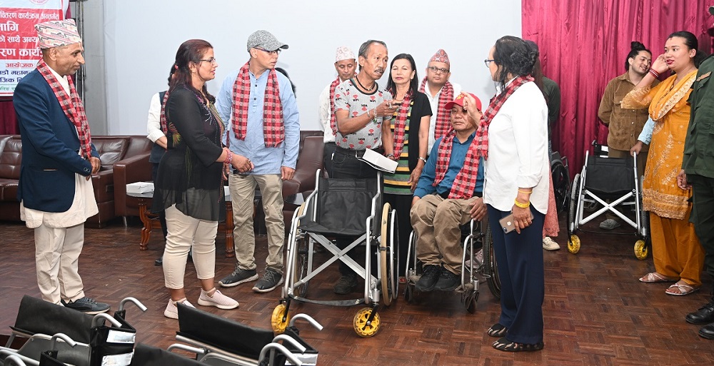 काठमाडौं १७ असार । काठमाडौँ महानगरपालिकाभित्र स्थायी बसोबास गर्ने अपाङ्गता भएका २५ जना व्यक्तिलाई ह्वील चेयर, ११ जनालाई सामाजिक विकास विभागले कमोट चेयरसहित सहायता सामग्री, खेल, खेलौनाजस्ता सहायक सामग्री निःशुल्क उपलब्ध गराइएको छ । वडाबाट सिफारिस भएका सबै प्रकारको अपाङ्गता भएका व्यक्तिहरुका लागि विभागले सामग्री उपलब्ध गराएको हो ।
