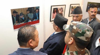 नेपाली कांग्रेसले काठमाडौँमा आयोजना गरेको ‘क्रान्तिदेखि शान्तिसम्म’ विषयक फोटो प्रदर्शनीमा प्रधानमन्त्री प्रचण्ड सहभागी भएर फोटो अवलोकन गरेका हुन् ।