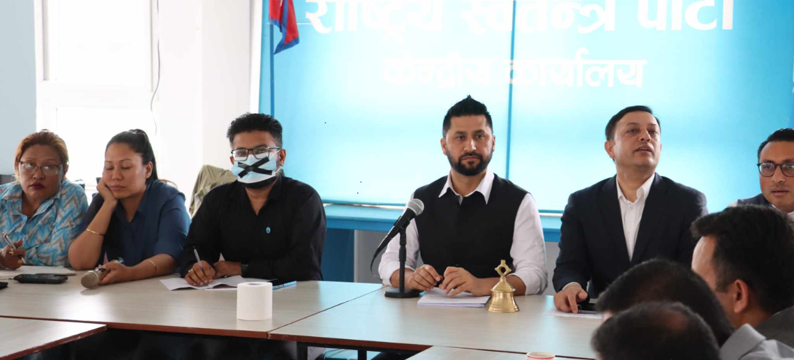 काठमाडौं १९ असार । राष्ट्रिय स्वतन्त्र पार्टी रास्वपाका महामन्त्री मुकुल ढकालले पाटीको बैठक लाइभ नगरिएकाले आफू मुखमा कालो टेप लगाएर बैठकमा उपस्थित भएको स्पष्टीकरण दिएका छन्।
