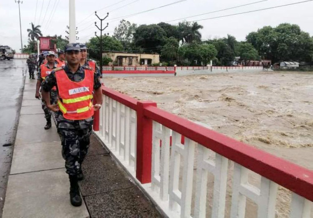 काठमाडौं २३ असार । पहाडी तथा पूर्वका जिल्लामा भएको अविरल वर्षाका कारण सप्तकोशी नदीमा बढेको पानीको बहाव अनुगमन तथा निरीक्षण गर्दै सुरक्षाकर्मी ।