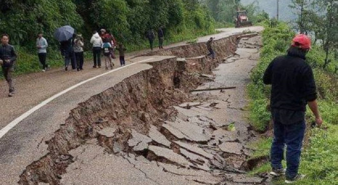 उक्त स्थानमा आज बुधबार० बिहान सडक भासिएको हो।