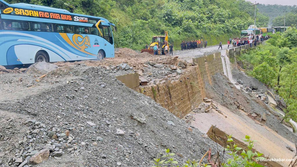 ‘गएराति नै आएको पहिरोले सडक अवरुद्ध बनेको हो । माथिबाट ठूला ठूला ढुंगाहरु खसेका छन्, यसलाई हटाउन पनि समस्या भइरहेको छ, ठूलो एक्साभेटर मगाउने काम भइरहेको छ,’ एसपी खत्रीले भने, ‘अझै केही घण्टा यसलाई क्लियर गर्न लाग्छ ।’