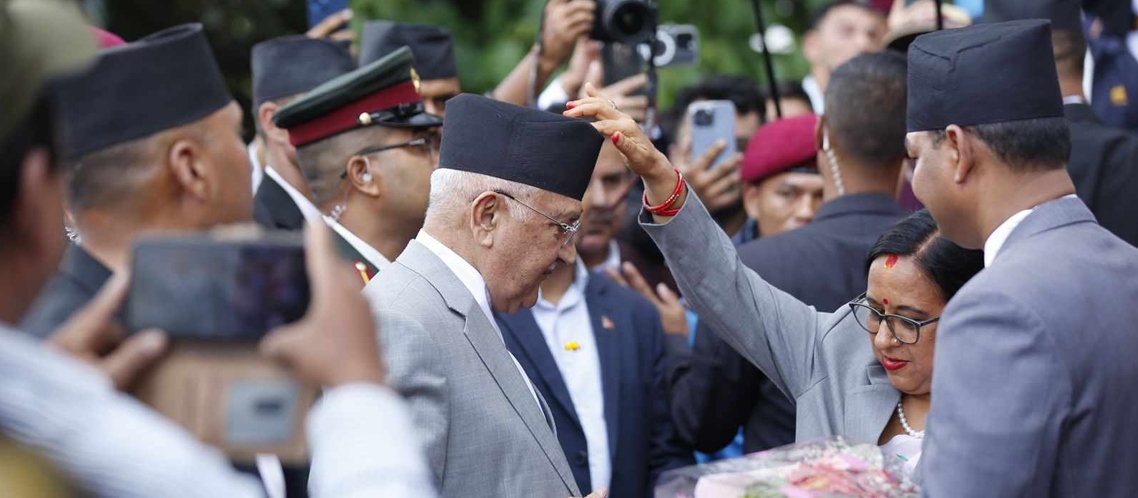 काठमाडौं ३१ असार । नवनियुक्त प्रधानमन्त्री केपी शर्मा ओलीले पदभार ग्रहण गरेका छन्।