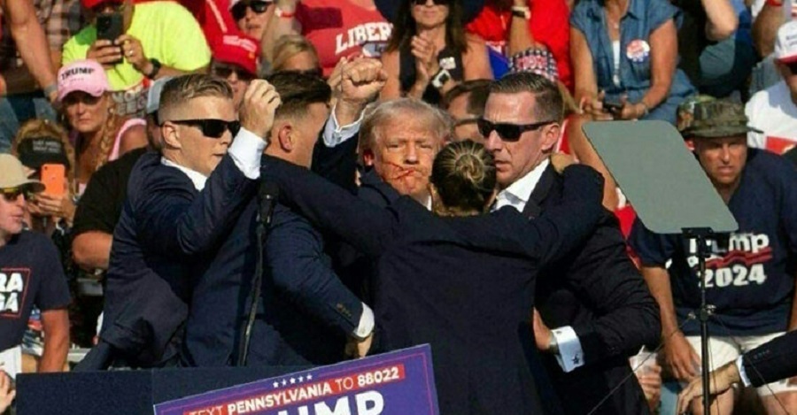 पेन्सल्भेनियाको बटलरमा एउटा र्यालीमा बोल्दै गर्दा धेरै धमाकाको आवाज आएको थियो । ट्रम्पले आफ्नो कान समात्नुभयो, उहाँको कान र गालामा रगत देखिन थाल्यो, फेरि उहाँ भुइँमा लड्नुभयो । सिक्रेट सर्भिस एजेन्टहरूले पोडियममा आएपछि उहाँलाई घेरे र नजिकैको गाडीमा लगे ।