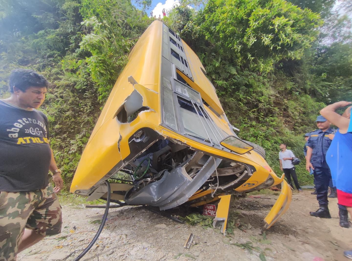 सोमबार बिहान ९ बजेतिर गुड्कु भन्ने ठाउँमा सडकको घुम्तीबाट स्कुल बस ५० मिटर तल खसेर दुर्घटना भएकोे हो ।