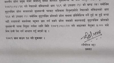 कैलाली । सुदूरपश्चिम प्रदेशमा नयाँ सरकार गठनको लागि दुई दिन समय दिइएको छ ।