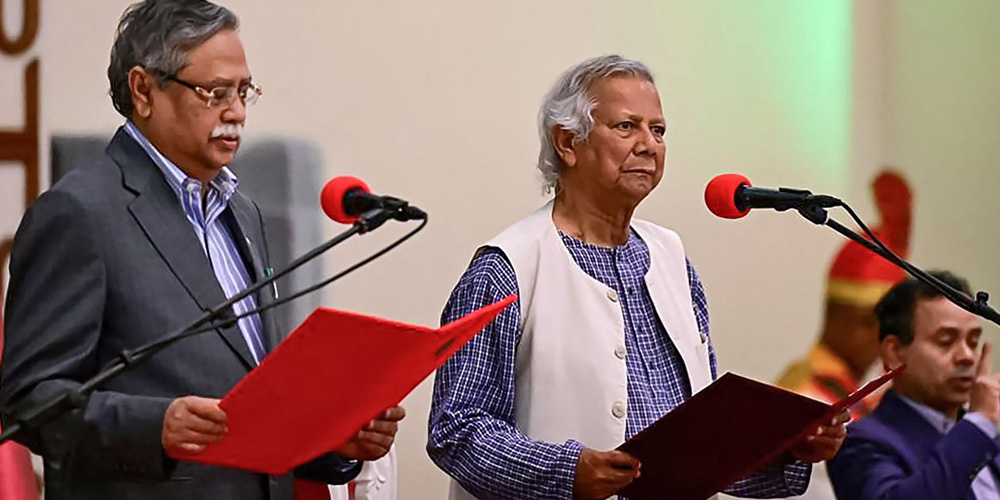 काठमाडौं २५ साउन । नोबेल पुरस्कार विजेता मुहम्मद युनुसले बिहीबार बङ्गलादेशको अन्तरिम सरकारको प्रमुखका रूपमा शपथ लिनुभएको छ ।