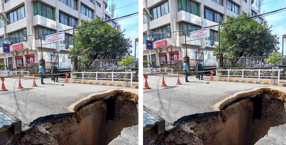 महानगरपालिकाकै कार्यालय अगाडि परेको उक्त भ्वाङको भिडिओ सामाजिक सञ्जालमा राख्दै मेयर बालेनले भनेका छन्, ‘यो टुकुचामाथिको बाटो हो। अझै केहि घरहरू यसरी नै टुकुचा माथि रहेका छन्। काठमाडौँ महानगरले केहि समय पहिले यस्तै जोखिम देखेर खोला खुल्ला गर्न टुकुचा खोल्ने काम सुरू गरेका थियौँ। अदालती कारणले केहि रोकिन परेको थियो।’