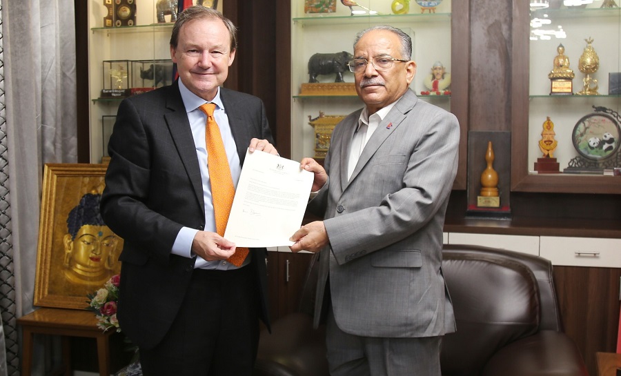 भेटमा राजदूत फेनले बेलायती प्रधानमन्त्रीको तर्फबाट उहाँको नयाँ कार्यकालका लागि प्रेषित बधाई सन्देशको लागि धन्यवादसहितको प्रेसित पत्र अध्यक्ष प्रचण्डलाई हस्तान्तरण गर्नुभयो ।