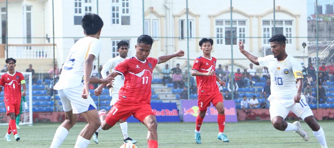 ललितपुरको सातदोबाटोस्थित एन्फा कम्प्लेक्स मैदानमा जारी खेलको पहिलो हाफ सकिदा श्रीलंकाविरुद्ध नेपाल १–० ले अघि छ।