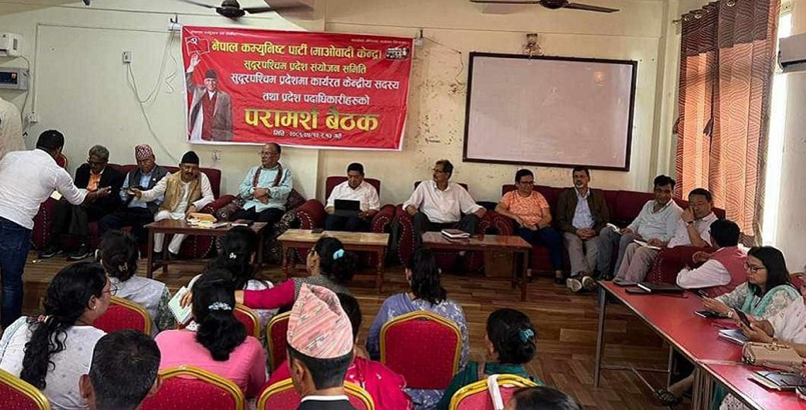 माओवादीको सुदूरपश्चिम प्रदेश संयोजन समितिमा कार्यरत केन्द्रीय सदस्य र प्रदेश पदाधिकारी परामर्श बैठकमा सामेल छन्।