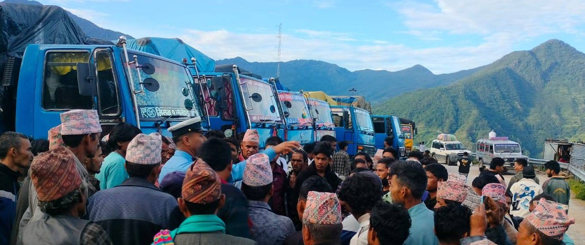 ‘गत बुधबारदेखि अवरोध सडक खुलाउने प्रयास भइरहेको छ। खाडाँचक्र नगरपालिका–३ को ताडीमा जुम्लाबाट आएका स्याउका ४५ मिनीट्रक रोकिएका छन्। एकरदुई दिनमा बाटो बनेपछि सुर्खेततर्फ जान्छन्,’ उनले भने।