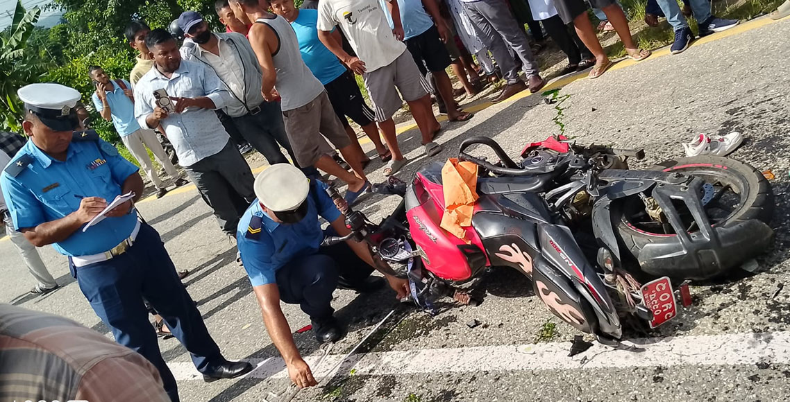 नवलपरासीबाट झापाका लागि सिमेन्ट लोड गरी गुडेको उक्त ट्रकले सुवेदी सवार मोटरसाइकललाई हेटौँडा उपमहानगरपालिका– १९ नेवारपानीस्थित कोसिस पेट्रोल पम्प नजिक पूर्व–पश्चिम सडकखण्डमा ठक्कर दिएको थियो।