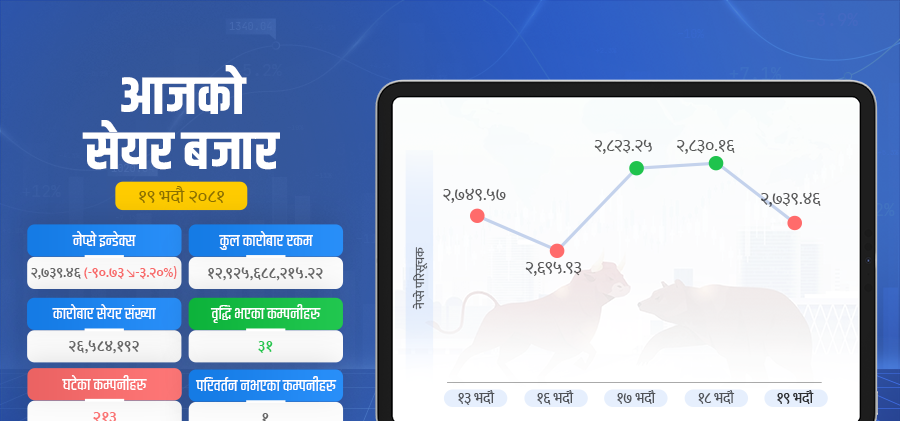 सेयर बजारमा उच्च गिरावट, नेप्से २७३९ अंकमा झर्‍यो
