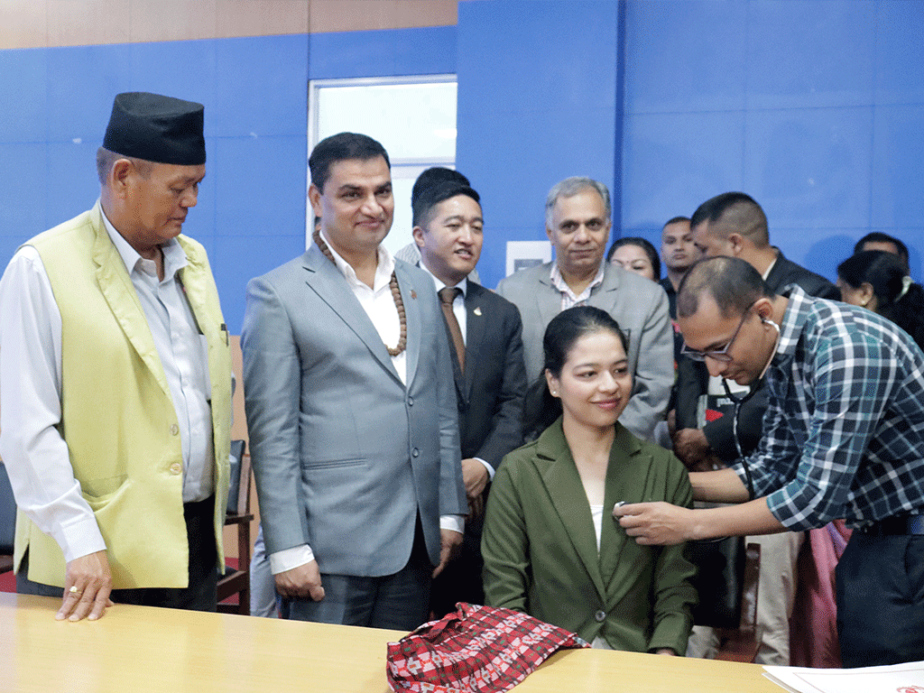 आज पेरिस पाराओलम्पि कांस्य पदक विजेता पलेसा गोवर्द्धनको स्वास्थ्य परीक्षण गरेर निःशुल्क परीक्षणको सुरुआत गरिएको हो ।
