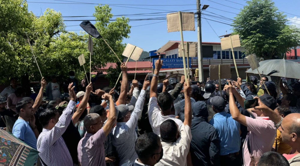 रास्वपा गण्डकी प्रदेशको विस्तारित बैठक बिरौटास्थित ग्यालेक्सी ब्यांक्वेटमा चलिरहेको छ । बैठकस्थलमा छिर्ने क्रममा सूर्यदर्शन बचत तथा ऋण सहकारी संस्थाका बचतकर्ताले लामिछानेलाई कालो झण्डा देखाएका हुन् । प्रदर्शनकारीले बैठकस्थलबाहिर सहकारी ठगलाई राजनीतिक संरक्षण मिलेको भन्दै नाराबाजी गरिरहेका छन् ।