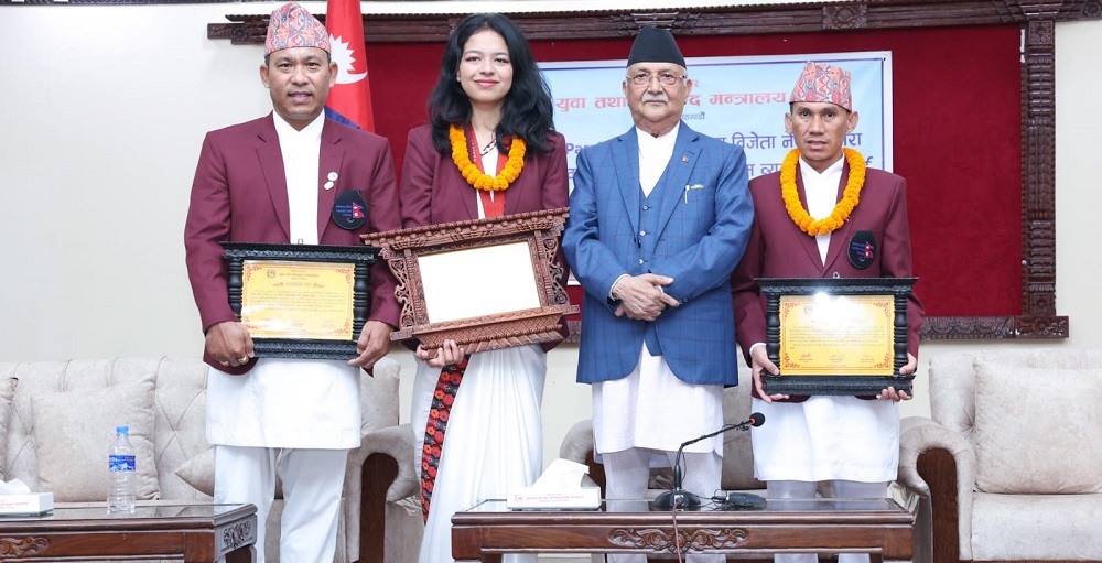 युुवा तथा खेलकुद मन्त्रालयद्वारा प्रधानमन्त्री निवास, बालुवाटारमा आयोजित कार्यक्रममा प्रधानमन्त्री ओलीले खेलमा विजय हासिल गरेपछि खेल क्षेत्रको उत्साह कायम राख्न छिटो छिटो पुरस्कार दिने र राशीमा कर नकटाउने नीति लिइएको बताउनुभयो ।
