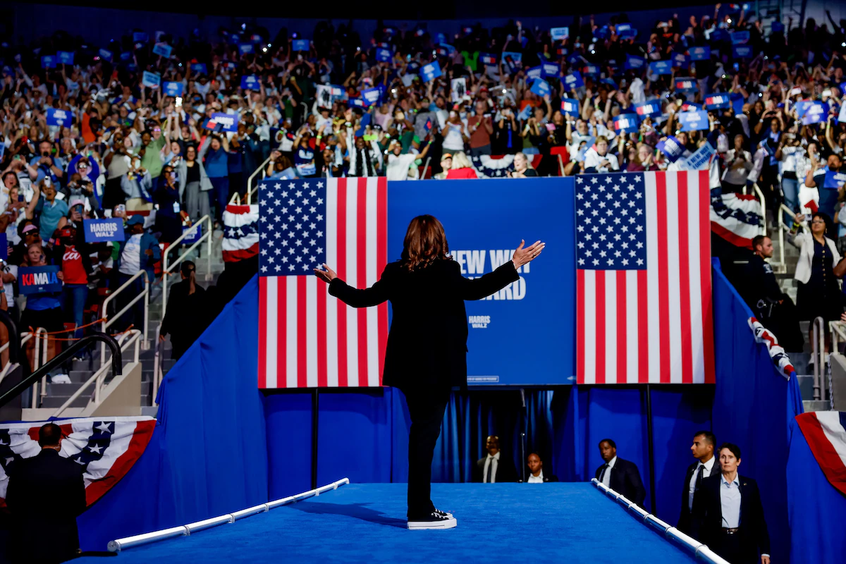 कमला ह्यारिस, हिप छैन भने केही पनि छैन, जुन टेलर स्विफ्टको शैलीमा रमाइलो छ। (स्विफ्टले ह्यारिस–वाल्ज टिकटको समर्थन गर्दा ख्यतभ।नयख मा ४ लाख भिजिटर कमाएको थियो ) होची ह्यारिस (उनी ५ फुट ४ इन्च अग्ली छिन्) मञ्चमा कालो सूट र कालो कनभरस ले–(अप लगाएर आइन्। बोल्ने सबै — जो उत्तर क्यारोलिना, महत्त्वपूर्ण स्विङ्ग स्टेट, व्लु स्टेट बनाउने आशा गर्दै चुनाव लडिरहेका राजनीतिज्ञ थिए — शाब्दिक रूपमा दौडिरहेको जस्तो देखिन्थ्यो। हरेकले डेमोक्र्याटिक पार्टीको प्लालिस्टका उच्च र निम्न नोटहरू समाते, जसमा गर्भपात अधिकार (धन्यबाद), ट्रम्प (नकारात्मक), किफायती आवास, राम्रो स्कूल र शिक्षकहरूको तलब, र मध्यम वर्गका लागि कर कटौती सामेल थियो।
