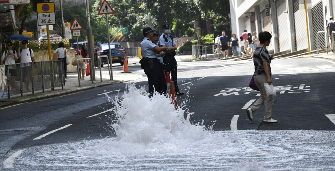 हङकङमा फोहोरा छुट्नेगरी फुट्यो पानीको पाइप, जलमय बन्यो सडक