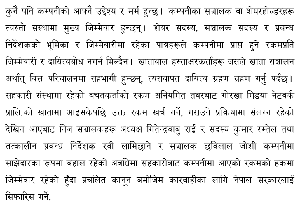 सहकारीको रकम गोर्खा मिडियामा अपचलन भएको विषयमा सहकारी समितिले ८ वटा सुझाव दिएको छ ।