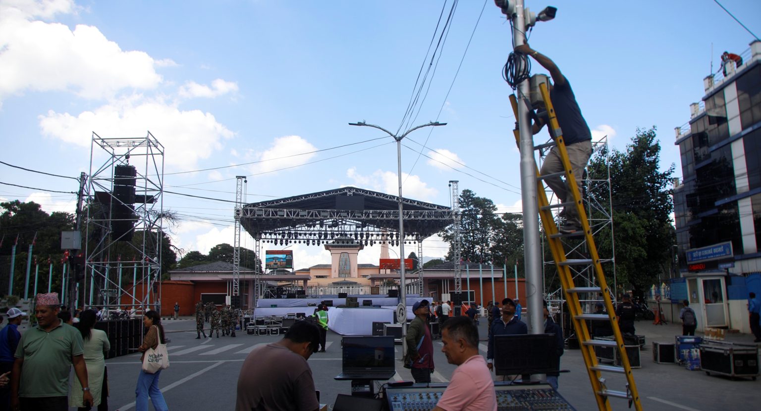 ‘नेशनल डे कन्सर्ट’ नाम दिइएको सो कन्सर्ट दरबारमार्गको मुख्य सडकमा आयोजना गर्नेगरी मञ्च बनाइएको छ । कन्सर्ट सञ्चालन गर्न आवश्यक समन्वय र सहजीकरण सरकारले गरेको गृह मन्त्रालयका प्रवक्ता सहसचिव० ऋषिराम तिवारीले बताए । सहसचिव तिवारीले भने, ‘आवश्यक सबै सुरक्षा व्यवस्था मिलाएका छौँ ।’