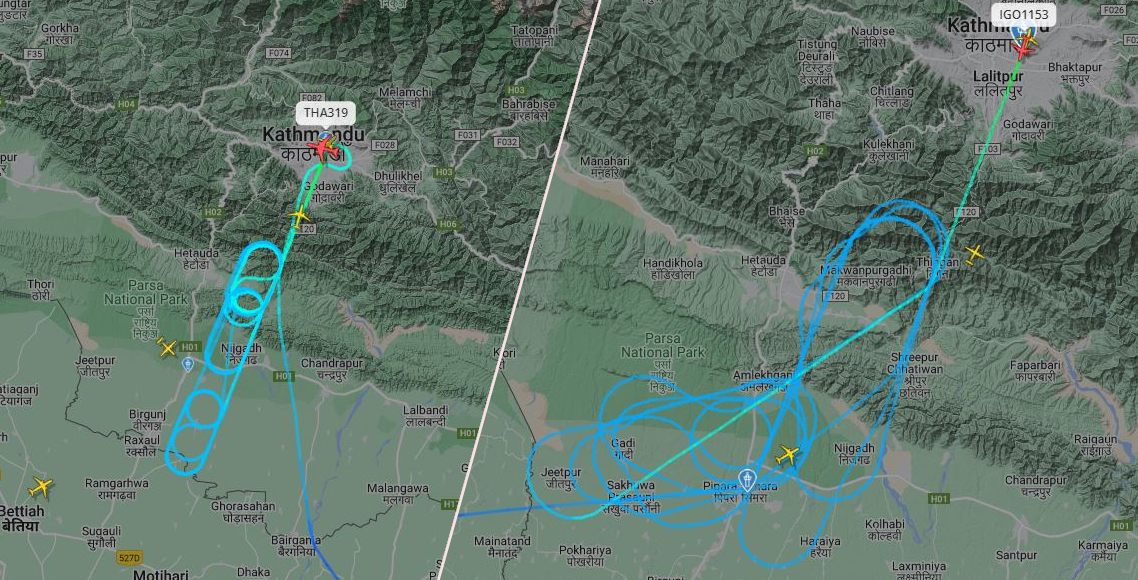 त्यसैगरी नयाँ दिल्लीबाट काठमाडौं आएको इन्डिगोको जहाज पनि आकाशमा लामो समय ‘होल्ड’ भएको छ। इन्डिगोको ६ई११५३ उडान नम्बरको जहाज प्रतिकूल मौसमका कारण होल्ड हुन पुगेको त्रिभुवन अन्तर्राष्ट्रिय विमानस्थलले जनाएको छ।