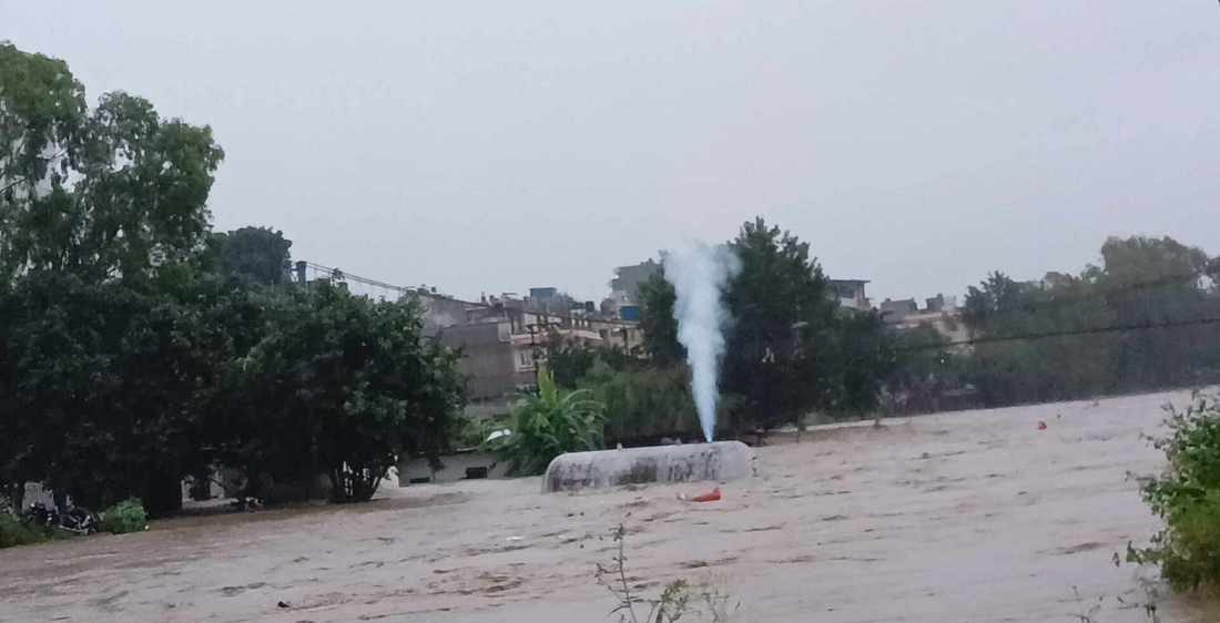 भक्तपुरतर्फबाट बगाएर ल्याएको उक्त बुलेट बाढीमा बग्दै गर्दा ग्यास निस्केर माथितिर गइरहेको देखिन्छ ।