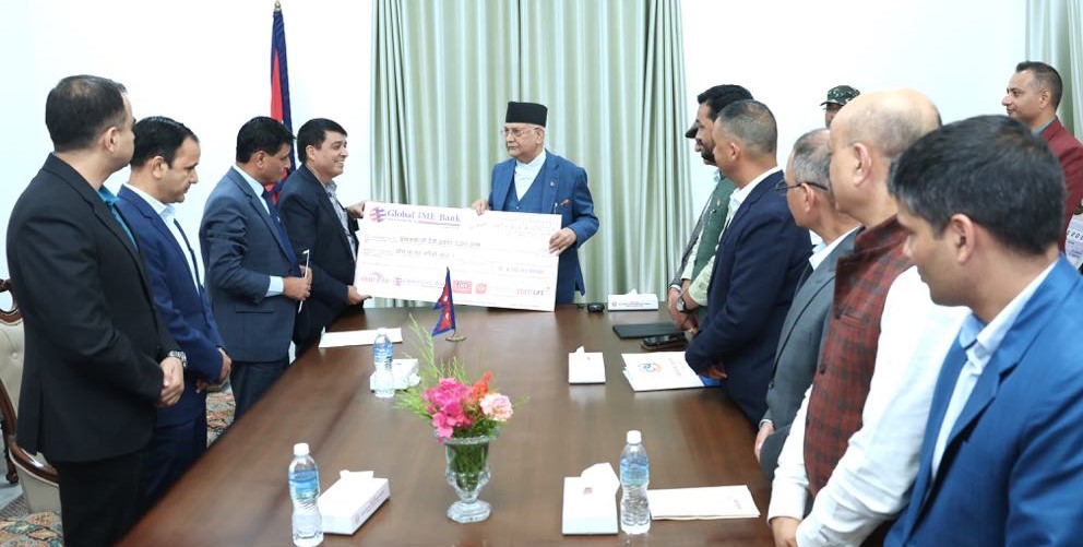 काठमाडौं २० असोज । प्रधानमन्त्री केपी शर्मा ओलीलाई प्रधानमन्त्री दैवी प्रकोप उद्धार कोषका लागि ग्लोबल आइएमइ बैङ्क, आइएमइ ग्रुप र आबद्ध कम्पनीका तर्फबाट पाँच करोड रकमको चेक हस्तान्तरण भएको छ ।