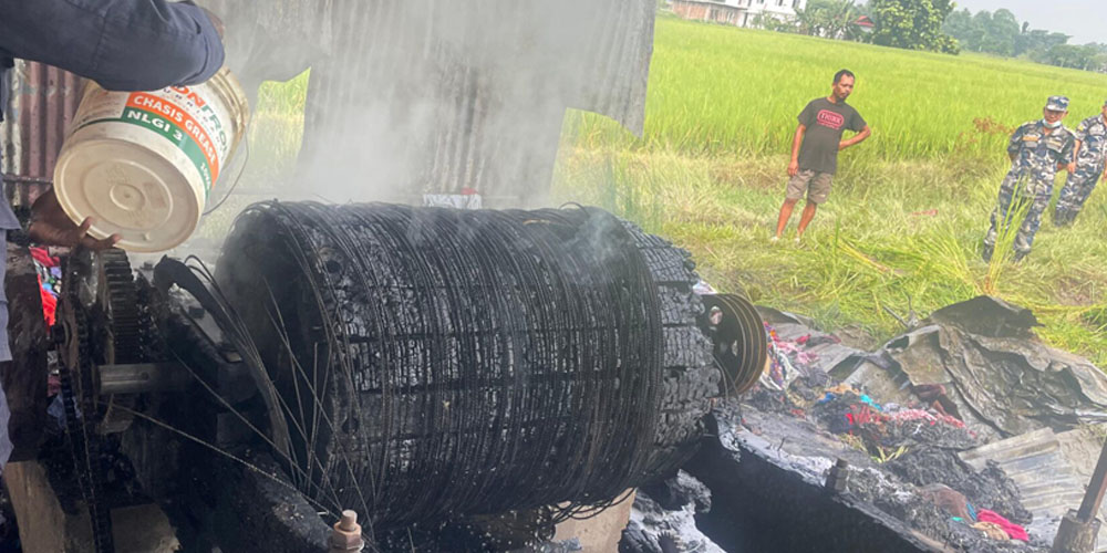 काठमाडौं २ कात्तिक । बिर्तामोडको कपास फ्याक्ट्रीमा आगलागी हुँदा ४० लाख बराबरको क्षति भएको छ । शुक्रवार बिर्तामोड– १ स्थित बरपिपल चोकमा नेक मोहमदले सञ्चालन गरेको कपडाबाट रुवा बनाउने इरतान कपास फ्याट्रीमा अचानक विद्युत सर्ट भई आगलागी भएको थियो । आगलागीबाट टिनले छाएको भुइँतले कपासको गोदामसहित फ्याक्ट्रीको टहरा पूर्णरुपले जलेर नष्ट भएको छ ।