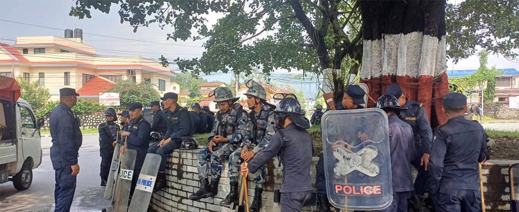 राष्ट्र बैंक चोकदेखि शहीद चोक, कास्की जिल्ला अदालतसम्म बाक्लो संख्यामा सशस्त्र र नेपाल प्रहरीको टोली परिचालन गरिएको छ ।