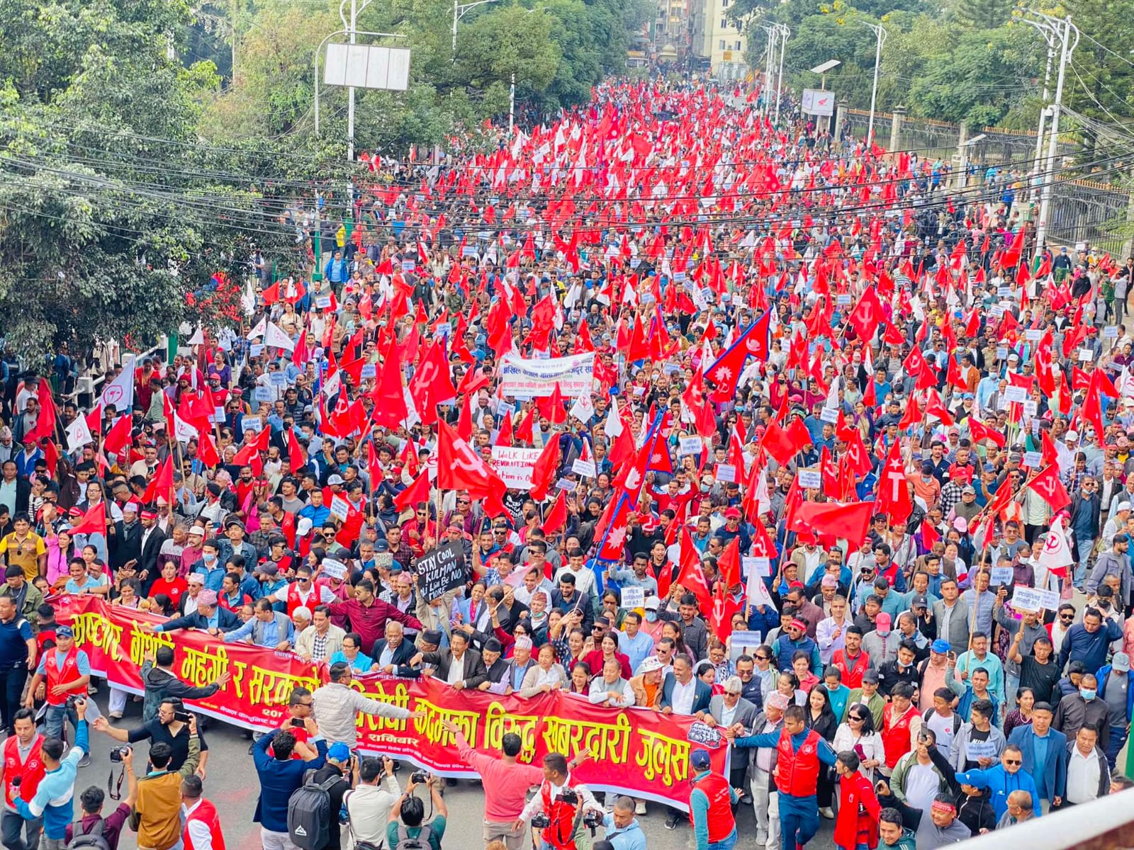 काठमाडौं १० कात्तिक,। नेकपा माओवादी केन्द्रले भृकुटी मण्डपमा आयोजित विरोध सभाअघि जुलुस निकालेको छ । काठमाडौं मलमा जम्मा भएर माओवादीले जुलुस निकालेको हो ।