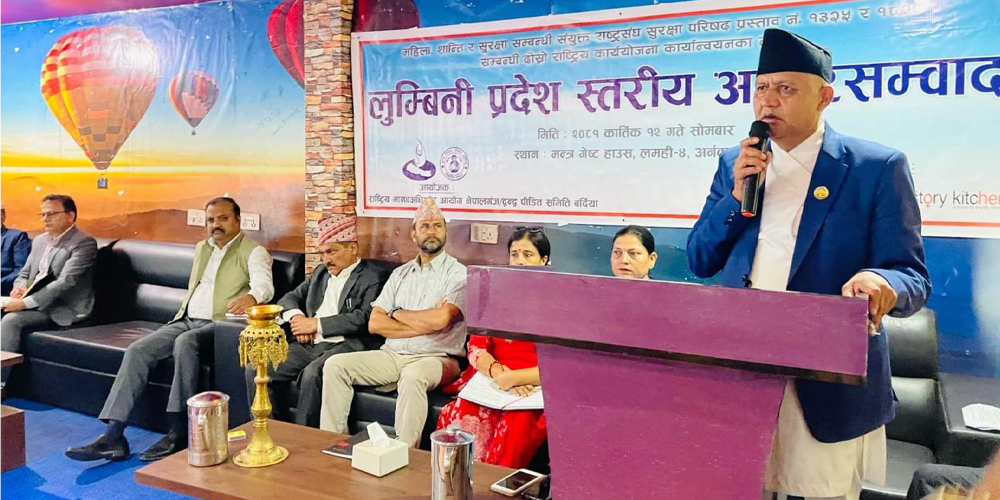 राष्ट्रिय मानव अधिकार आयोग नेपालगन्ज र द्वन्द्वपीडित समिति बर्दियाको आयोजनामा प्रदेश राजधानी राप्ती उपत्यका देउखुरीमा आज आयोजित महिला, शान्ति र सुरक्षासम्बन्धी संयुक्त राष्ट्रसङ्घ सुरक्षा परिषद् प्रस्ताव नम्बर १३२५ र १८२० सम्बन्धी दोस्रो राष्ट्रिय कार्ययोजनासम्बन्धी प्रदेशस्तरीय अन्तरसंवादमा उहाँले यस्तो बताउनुभएको हो । मुख्यमन्त्री आचार्यले प्रदेश सरकारले सङ्क्रमणकालीन न्यायको परिपूर्ति गर्न परिपूरणको योजना अघि बढाएको बताउनुभयो ।