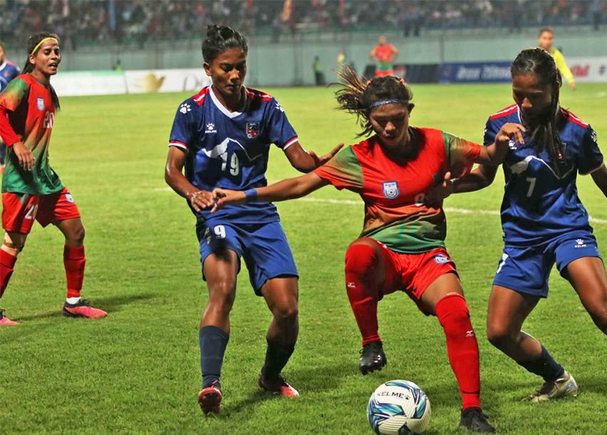 खेलको ५२औ मिनेटमा बंगलादेशले गोल गर्दै १–० को अग्रता लिएको थियो भने खेलको ५५औं मिनेटमा नेपालका लागि अमिशा कार्कीले गोल गर्दै खेल बराबरी गरेकी थिइन् ।