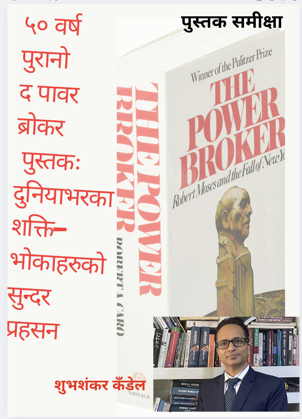 ‘द पावर ब्रोकर’ एक कालजयी पुस्तक हो, जसले शक्ति र यसको बृहत्तर प्रभावलाई चित्रण गरेको छ। लेखक रोबर्ट कारोले लेखेको यो पुस्तक अमेरिकी इतिहासका एक अत्यन्तै प्रभावशाली, तैपनि विवादास्पद व्यक्ति रबर्ट मोसेसको जीवन र करियरमा आधारित छ। प्रकाशित भएको पाँच दशक भइसकेको भए पनि यो पुस्तक अझै पनि दुनियाभरका सत्ता र शक्तिमा लिप्त व्यक्तिहरूका लागि एक पठनीय पुस्तकका रूपमा रहेको छ।