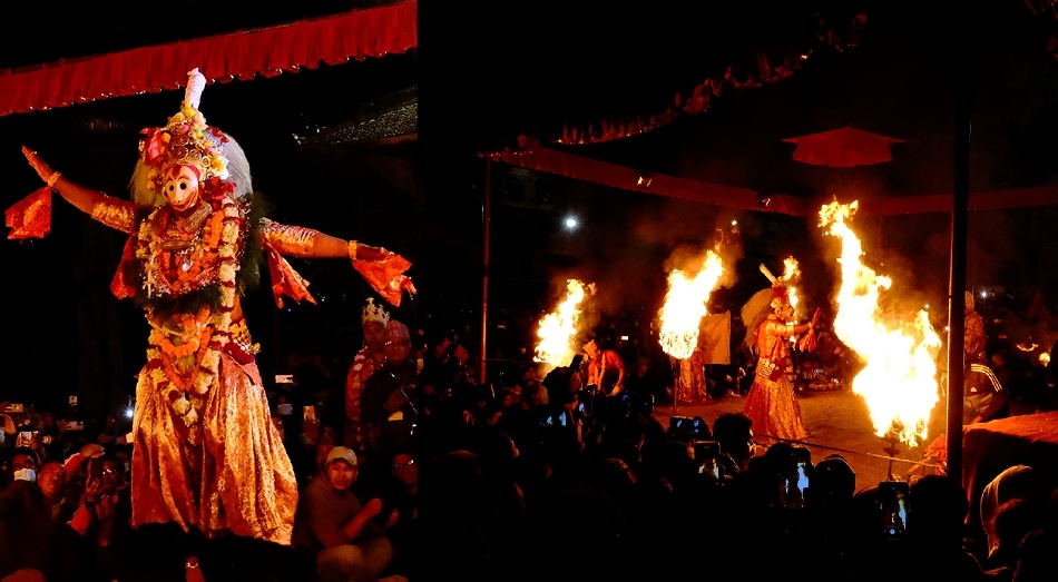 मल्लकालीन राजा सिद्धिनरसिंहले ललितपुरका जनतालाई भय र त्रासमुक्त गर्न यो नाच देखाउन थालेको मान्यता छ । यस नाचका सर्जक, स्रष्टा एवं प्रवर्तक सिद्धिनरसिंहका शिक्षागुरु पण्डित हरिवंश उपाध्याय र दीक्षागुरु विश्वनाथ उपाध्याय भएको उल्लेख छ ।