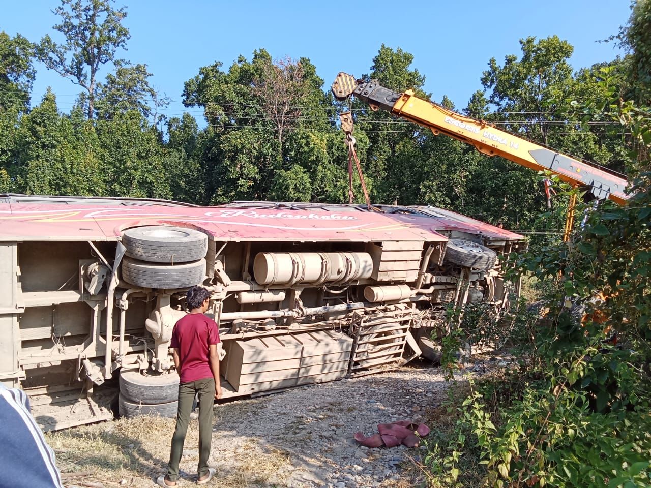 काठमाडौँबाट महोत्तरी जाँदै गरेको प्रदेश २–०३–००१ ख ३६२९ नं। को बस आफैँ अनियन्त्रित भई सडकबाट अन्दाजी १० मिटर तल दाहिने साइडमा पल्टिँदा दुर्घटना भएको हो ।