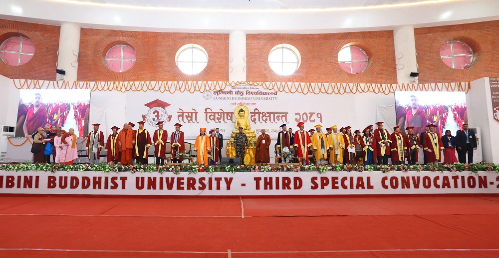 काठमाडौं १४ मंसिर । लुम्बिनी बौद्ध विश्वविद्यालयको तेस्रो विशेष दीक्षान्तका अवसरमा शुक्रबार प्रधानमन्त्री एवम् कुलपति केपी शर्मा ओलीबाट एक मानार्थ विद्यावारिधिसहित विभिन्न सङ्कायमा उपाधिप्राप्त दुई सय ८९ जना दीक्षित भएका छन् ।
