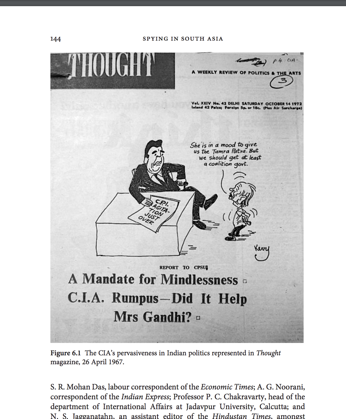 पोल म्याकगारको नयाँ पुस्तक स्पाइङ इन साउथ एसियाः ब्रिटेन, अमेरिका, र भारतको गोप्य शीत युद्ध ले शीत युद्धको समयमा भारतमा पश्चिमी गुप्तचर एजेन्सीहरूको गतिविधिलाई गहिरो अध्ययनमार्फत उजागर गरेको छ । पल एम. म्याकगार, भारतमा पश्चिमी गुप्तचर एजेन्सीहरूको कार्यको इतिहास र देशका राजनीतिक नेतृत्वको कडा प्रतिक्रिया विश्लेषण गर्ने इतिहासकार हुन् ।