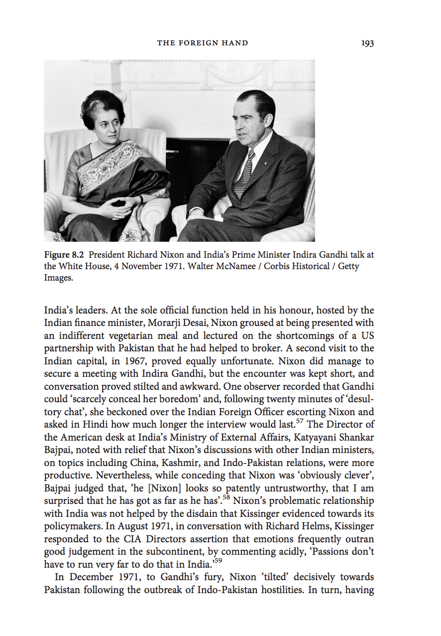 यस समयमा, भारतीय प्रधानमन्त्रीहरूले बारम्बार देशलाई अस्थिर पार्न विदेशी शक्तिहरू प्रयासरत रहेको भन्दै चिन्ता व्यक्त गर्थे । अर्कोतिर पश्चिमी देशहरूले भारतलाई आफ्नो भूमिकाबारे सन्तुष्ट पार्न सकेनन् । तर पनि गुप्तचर सहकार्य भने जारी रह्यो, जसले पेशागत प्रयास र घरेलु राजनीतिबीचको द्वन्द्वलाई स्पष्ट गदर्दथ्यो । म्याकगारका अनुसार, यो व्यावहारिक सोचको उपज थियो ।
