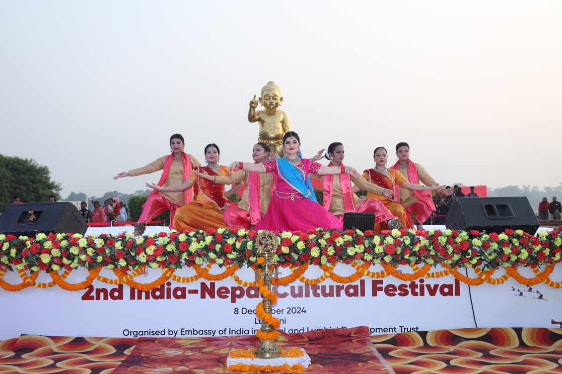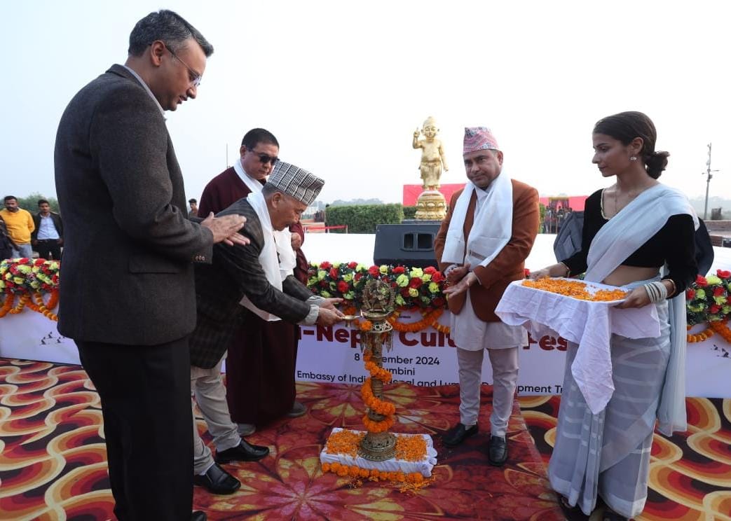 लुम्बिनी, २४ मंसिर । नेपालस्थित भारतीय राजदूतावासले लुम्बिनीमा भारत(नेपाल सांस्कृतिक महोत्सव आयोजना गरेको छ। लुम्बिनी विकास कोषसँगको सहकार्यमा भारतीय राजदूतावासले आइतबार लुम्बिनीमा सांस्कृतिक महोत्सव गरेको हो।