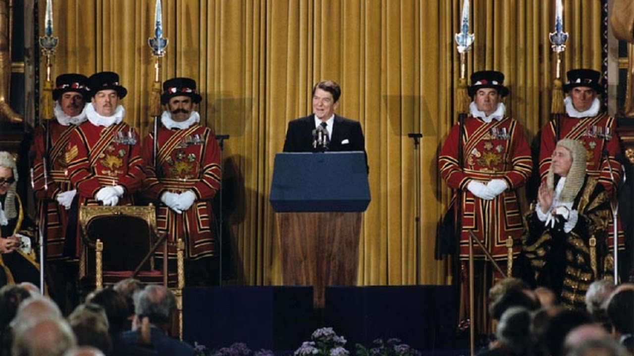 जून ८, १९८२ मा, राष्ट्रपति रोनाल्ड रेगनले ब्रिटिश संसदका सदस्यहरूलाई स्वतन्त्रता र लोकतन्त्रको बारेमा एक व्यापक सम्बोधन दिएका थिए । उनले लोकतान्त्रिक राष्ट्रहरूलाई आफ्ना सिद्धान्तहरू घरमा मात्र होइन, विदेशमा पनि प्रवर्धन गर्न आग्रह गरे। उनले स्वतन्त्रताको संघर्षलाई इस्राइलहरूको मिस्रबाट प्रवास र ग्रीकहरूको थर्मोपालीमा पर्शियन साम्राज्यको विरोधसँग जोडेर चित्रित गरेका थिए । उनले भनें, “स्वतन्त्रता केबल केही भाग्यशाली व्यक्तिहरूको विशेषाधिकार होइन, यो सबै मानव प्राणीको अमिट र सार्वभौमिक अधिकार हो” रेगनले भनेका थिए । र उनले संयुक्त राष्ट्रसंघको मानव अधिकार घोषणापत्रको जिकिर गर्दै, “यसले स्वतन्त्र चुनावको ग्यारेन्टी दिन्छ।“भन्ने कुरामा जोड दिएका थिए ।