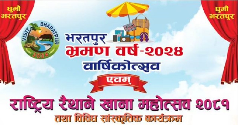 काठमाडौं ११ पुस ।    भरतपुर भ्रमण वर्षका अवसरमा राष्ट्रिय रैथाने खाना महोत्सव आयोजना गरिने भएको छ । भोलिदेखि १६ गतेसम्म पश्चिम चितवनको मेघौलीमा महोत्सव गर्न लागिएको हो ।