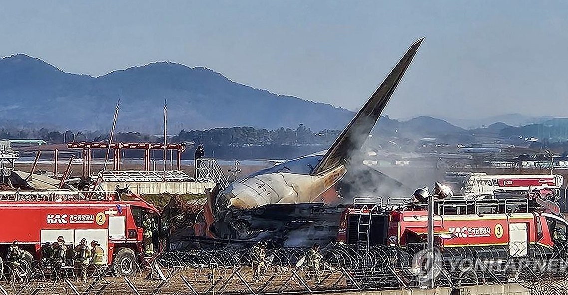बैंककबाट फर्किएको जेजु एयरको उडान दक्षिण कोरियाको मुआन काउन्टीस्थित मुसान अन्तर्राष्ट्रिय विमानस्थलमा अवतरण गर्ने क्रममा धावनमार्गबाट चिप्लिएर पर्खालमा ठोकिएको हो।