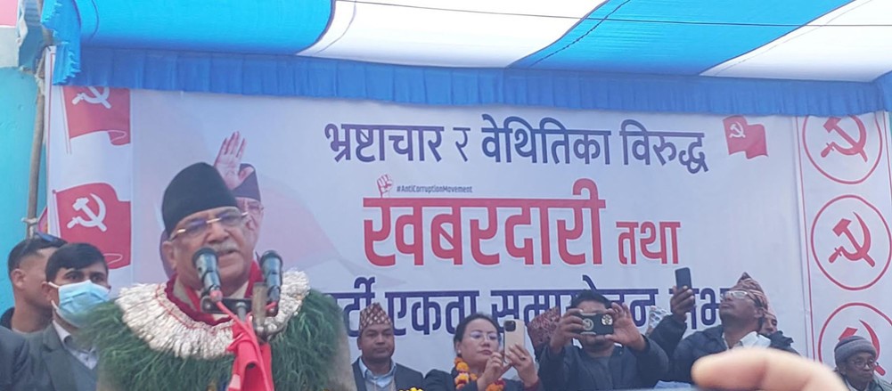 ‘हामी सुशासनको पक्षमा र भ्रष्टाचार विरुद्ध काम गरिरहेका थियौं तर सुशासन विरोधी र भ्रष्टाचारका पक्षपातीले काम गर्न दिएनन्,’ दाहालले भने, ‘अहिलेको सरकार सुशासनविरुद्ध र भ्रष्टाचारका पक्षमा काम गरिरहेको छ ।’
