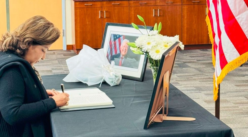 मन्त्री राणाले शुक्रबार काठमाडौंस्थित अमेरिकी राजदूतावासमा पुगी अमेरिकी पूर्वराष्ट्रपति एवं नोबेल शान्ति पुरस्कार विजेता कार्टरको स्मृतिमा त्यहाँ राखिएको शोक पुस्तिकामा हस्ताक्षर गर्दै नेपाली जनता, नेपाल सरकार र आफ्नो तर्फबाट उनीप्रति श्रद्धाञ्जली अर्पण गर्नुका साथै उनको परिवारजनमा समवेदना प्रकट गरेकी हुन् ।