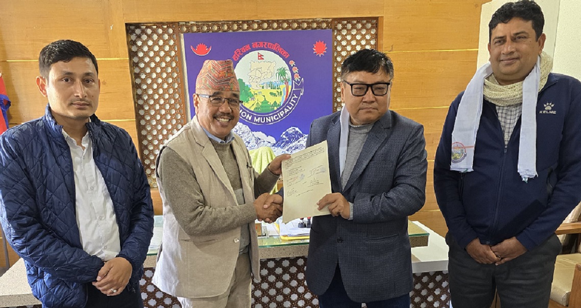 सम्झौतापत्रमा हरिवन नगरपालिकाको तर्फबाट प्रमुख बुढाथोकी र हरिहरपुरगढी गाउँपालिकाका अध्यक्ष वाईबाले हस्ताक्षर गरे।